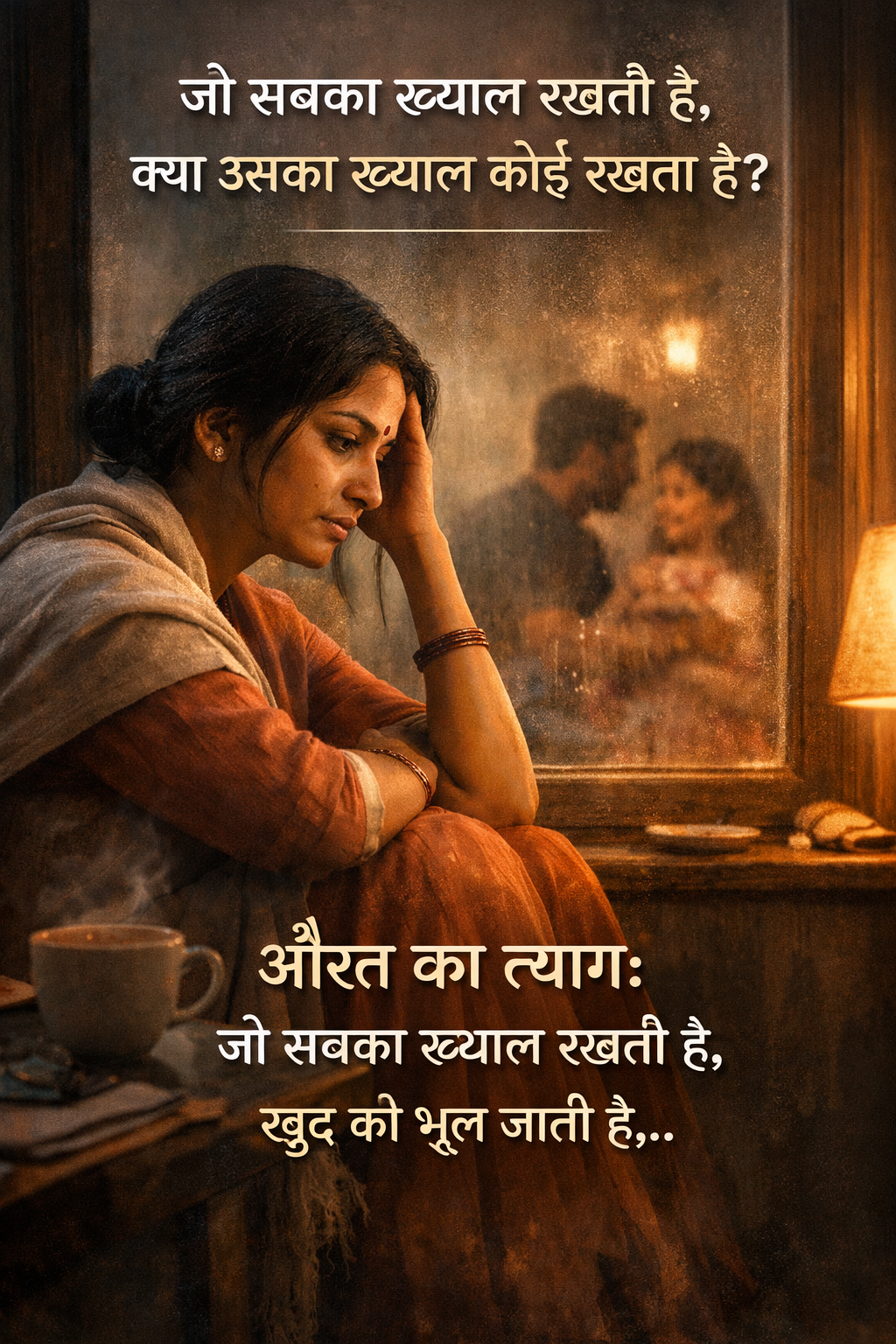 एक ऐसा शब्द, जिसमें त्याग, प्रेम और समर्पण छुपा होता है। समाज में औरत को कई रूपों में देखा जाता है—माँ, बेटी, पत्नी, बहन। लेकिन इन सभी रिश्तों को निभाते-निभाते वह अक्सर खुद को भूल जाती है। सच तो यह है कि औरत खुद को ही खर्च कर देती है अपनों के लिए।